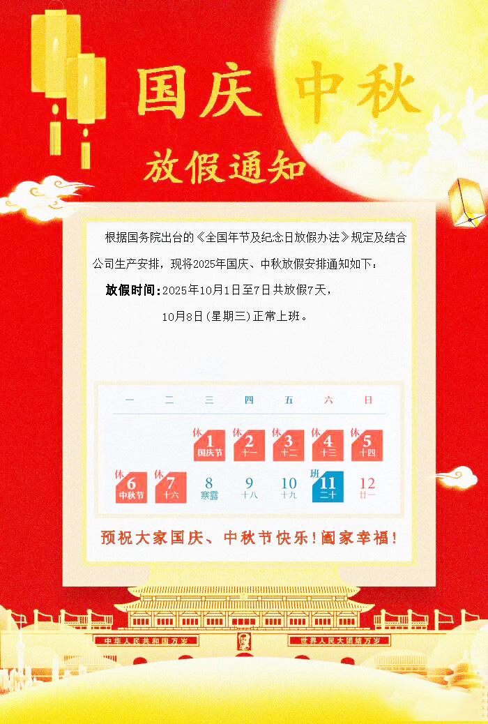 鼎华2025年国庆-中秋放假通知