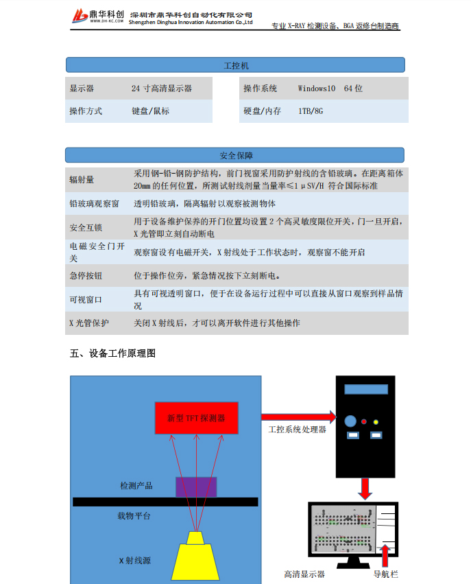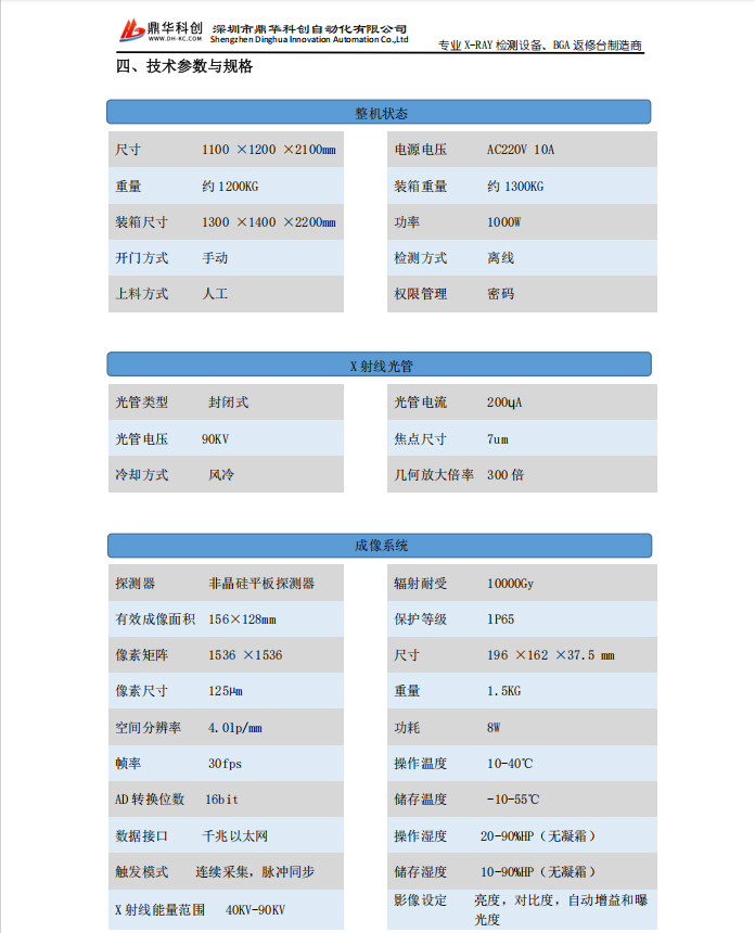 产品名称:鼎华X-RAY检测设备X-RAY无损探伤检测仪 DH-X7 产品型号:DH-X7 产品优势:鼎华通用型X-Ray检测系统DH-X7是一款自动ON/OFF X-RAY光管批量检测样品,搭配90KV滨松X-RAY光管,检测精度达5um,高分辨率数字X-RAY平板,1536*1536px图像更清晰,几何放大450x,系统放大2000x,540*540mm载物台可容纳大量各种尺寸样品,半自动的NG/OK产品检测,允许60°倾斜观测